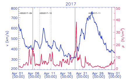The time restriction was computed as the duration in which solar wind would travel from the CH to 1 AU,